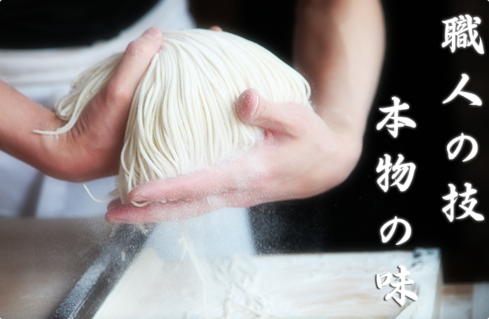 当店の麺は、本場上州、匠の技のもと氷流水で処理され、冷たくコシの強い麺となっております。